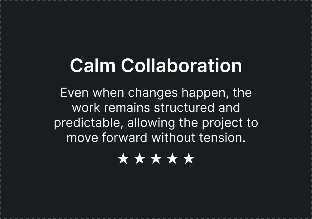 I work with discipline and patience. Design decisions are documented, revisions are handled carefully, and the collaboration stays calm even when the project becomes demanding.